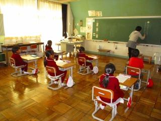 1年生 国語 文章の( )に当てはまる漢字を書きながら、短文を書き写す練習をしました。