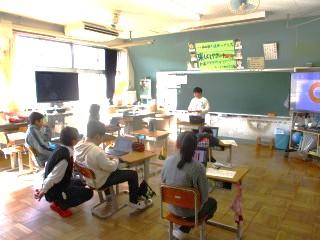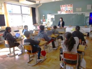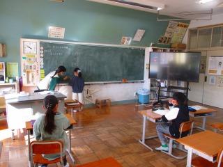 5年生 外国語 リズムに乗って英語であいさつしたり、質問に答えたりしました。