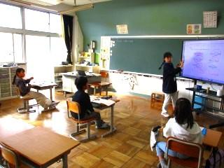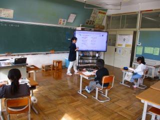 2組 電子黒板で九九の練習をしたり、協力学級で学習したりしました。