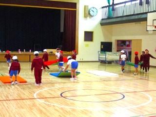 1年生 2年生 体育 運動をして体をほぐした後、協力してマット運動ができるようにマットを運びました。