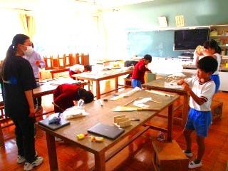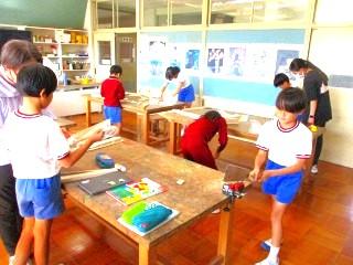 4年生 図工 作品を組み立てるための部品をのこぎりで切り出しました。