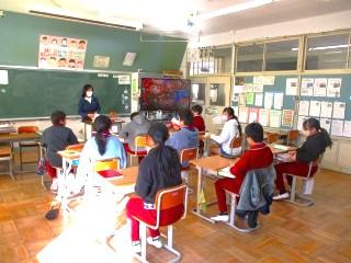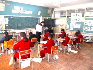 1年生 国語 電子黒板とドリルを組み合わせて漢字練習をしました。