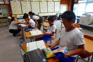 夏休みの思い出について、英語で書いています。学習したことを思い出しながら、時には自分で調べながら、行った場所、食べたもの、楽しかったことなどを表現していきます。自分で調べることで語彙も豊かになります。
