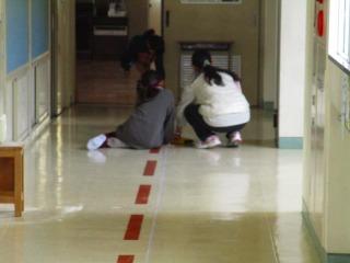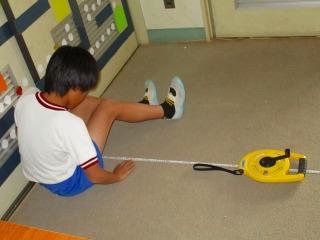 3年生 算数 長さの学習で、実際に校舎の廊下の長さを測りました。
