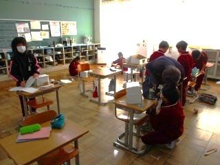 4年生 図工 自分が考えたダンボールボックス作りを進めました。