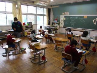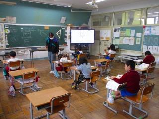 3年生 算数 プリントの問題の解き方を確認し合いました。