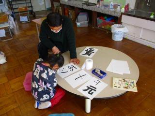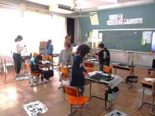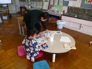 2組 協力学級で学習したり、書写をして名前の印を押したりしました。