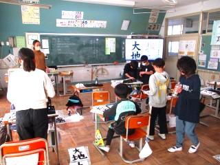 4年生 国語:書写 大きさや組み立てに気をつけて『大地』を書きました。
