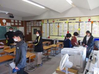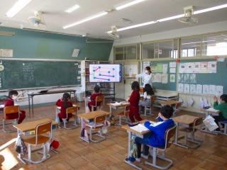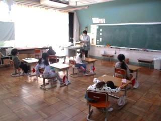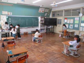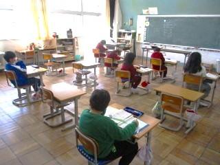 1年生 国語 テストを受けた後、机を元の位置に戻しました。
