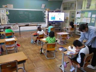 2年生 生活科 収穫したさつまいもを観察して、大きさや色や形を記録しました。