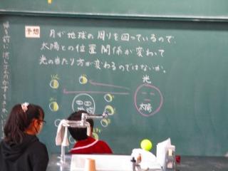 6年生 理科 地球と月の動きを、模型、図、自分たちが地球と月になって動く活動などで確認しました。