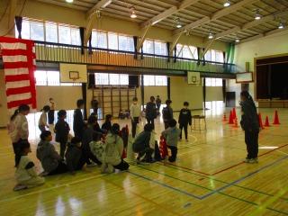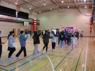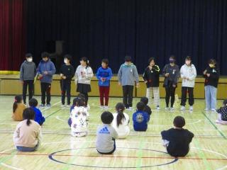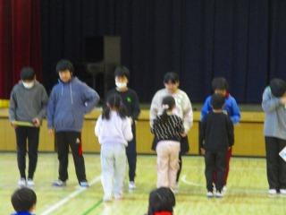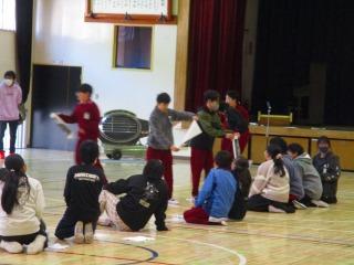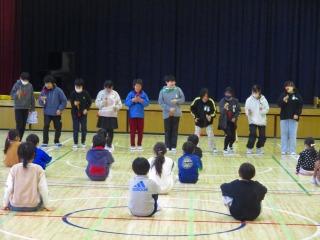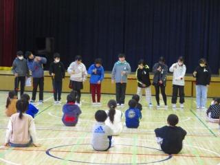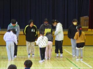 在校生の送る会の準備や運営を労うとともに、感謝の気持ちを6年生全員のけん玉競技で表現しました。