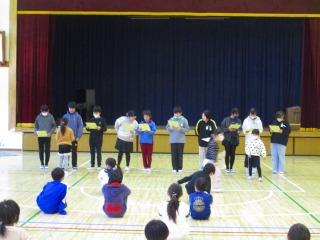 6年生へのプレゼントは1年生が手渡しました。