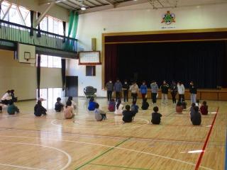 3年生と4年生は『陣取りゲーム』で6年生と交流しました。