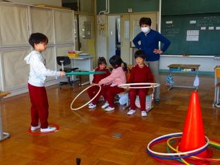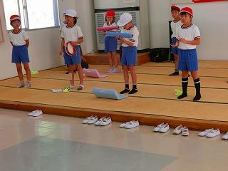 準備を進めてきた「わなげたいかい」。みんなが最後まで楽しく参加できるように、約束や順番を決めてスタートします。譲り合ったり、お手伝いしたり、応援したりしながら、楽しい輪投げ大会となりました。片付けもみんなで上手にできました