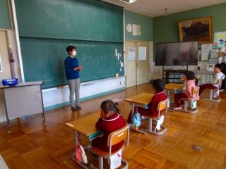 1年生が国語で漢字の学習をしました。大型モニターに映し出される漢字を見て、よみがなを素早く言ったり、スキルを使って漢字の使われ方を確かめたりして学習に取り組んでいました。
